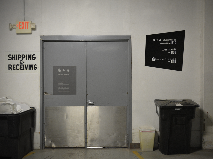 The building is an old industrial warehouse and has some pretty unique spaces. The creative companies that are renting in the building have interpreted their spaces in many unique ways. I wanted the signage to be eye catching and useful, yet also neutral to fit the space. There are many different back drops in the building so I refined to get this design.